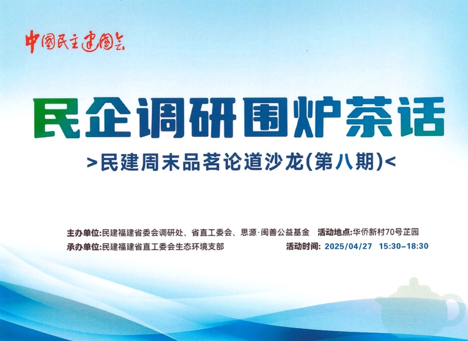 “民企調(diào)研 圍爐茶話”周末品茗論道沙龍由民建福建省委會調(diào)研處、省直工委會、思源·閩善公益基金主辦,民建福建省直工委會生態(tài)環(huán)境支部承辦。自舉辦以來,效果顯著,各位參會人員來自不同行業(yè)、不同崗位,針對民企發(fā)展和當(dāng)前一些亟待解決的問題各抒己見,碰撞出新的思想火花,為福建經(jīng)濟(jì)社會高質(zhì)量發(fā)展貢獻(xiàn)了民建智慧和力量。