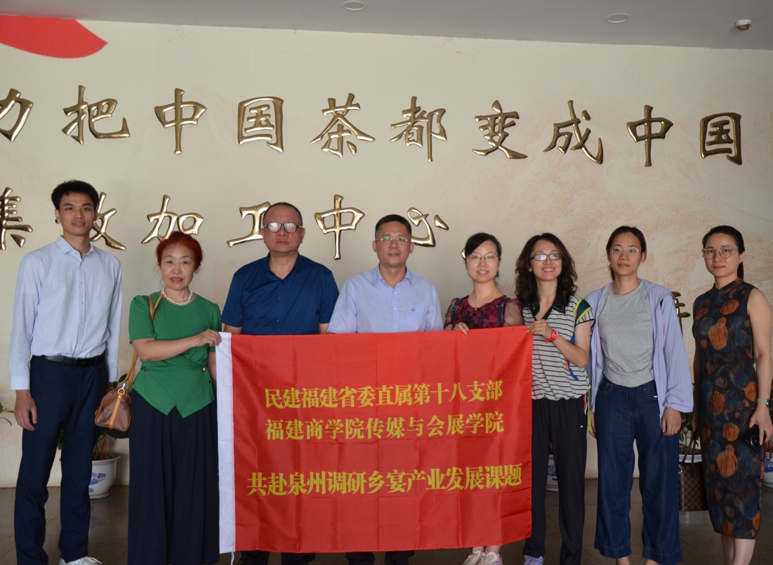2025630日,民建福建省委直屬第十八支部和福建商學(xué)院傳媒與會(huì)展學(xué)院組成的泉州鄉(xiāng)宴產(chǎn)業(yè)發(fā)展課題聯(lián)合調(diào)研組前往中國茶都調(diào)研,調(diào)研組參加的有:民建福建省直工委會(huì)秘書長黃畊晗,民建福建省直工委委員、民建福建省委直屬第十八支部主委蘇水良,組織委員曾黎明,活動(dòng)委林新拓。福建商學(xué)院傳媒與會(huì)展學(xué)院網(wǎng)絡(luò)與新媒體系主任周晨芳、副教授楊斌、副教授魏揚(yáng)赟,傳媒與會(huì)展學(xué)院會(huì)展系主任金珊。