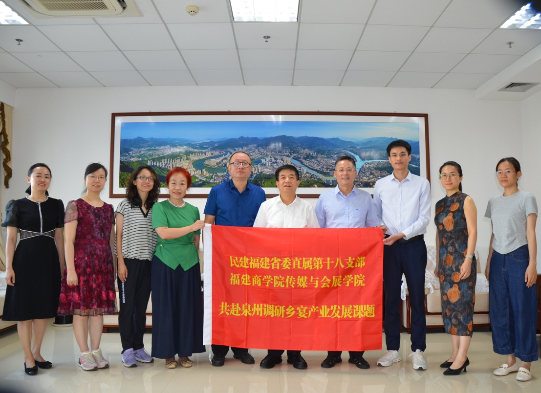 2025年6月30日,民建福建省委直屬第十八支部和福建商學(xué)院傳媒與會(huì)展學(xué)院組成的泉州鄉(xiāng)宴產(chǎn)業(yè)發(fā)展課題聯(lián)合調(diào)研組在安溪縣政協(xié)會(huì)議室召開“相府家宴”產(chǎn)業(yè)發(fā)展座談會(huì),安溪縣外燴餐飲行業(yè)協(xié)會(huì)會(huì)長黃種源,民建福建省直工委會(huì)秘書長黃畊晗,民建福建省直工委委員、民建福建省委直屬第十八支部主委蘇水良,組織委員曾黎明,活動(dòng)委林新拓。福建商學(xué)院傳媒與會(huì)展學(xué)院網(wǎng)絡(luò)與新媒體系主任周晨芳、副教授楊斌、副教授魏揚(yáng)赟,傳媒與會(huì)展學(xué)院會(huì)展系主任金珊合影留念。