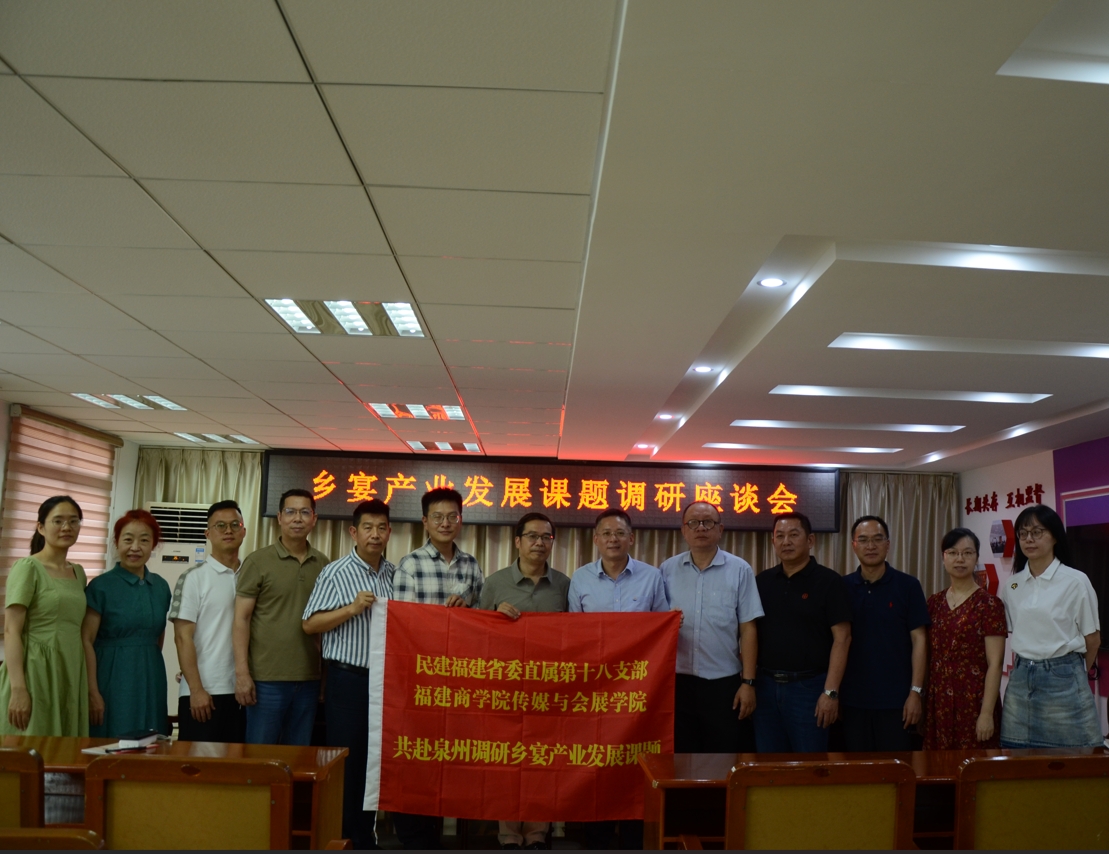 202572日,民建福建省委直屬第十八支部和福建商學院傳媒與會展學院組成的泉州鄉宴產業發展課題聯合調研組在晉江市民主黨派樓二樓會議室與晉江市商務局、晉江市文化和旅游局、晉江市餐飲烹飪行業協會等單位及行業組織舉行了座談會。民建晉江市委會主委莊伏龍、專職副主委張榕。晉江市文化和旅游局旅游發展中心主任施清涼、晉江市商務局內貿科副科長吳爽。晉江市餐飲烹飪行業協會會長胡滿榮,執行會長兼秘書長陳山春等出席。